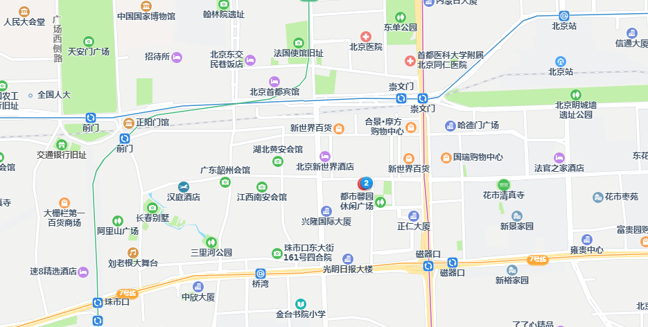 - 交通情况:距崇文门地铁站步行5分钟左右,与地铁5号线花市站仅为3分钟路程,近30条公交线路经过,交通便利。同时,它位于崇外大街与祈年殿大街之间,尽享两路之便利。