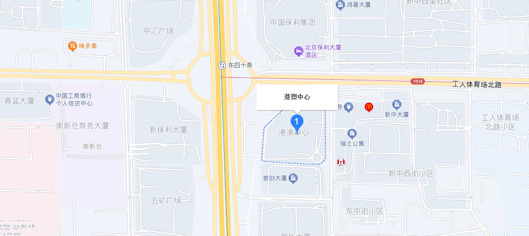 开 发 商:港澳中心有限公司 地 址:东城区朝阳门北大街2号 物 业 费:30元/月/㎡ 楼 层 数:17层 车位租金:1000元/月/个 车位数量:地上200个地下620个 电梯品牌:日本三菱 电梯数量:客梯4部、货梯2部 网络配置:长城 建筑年代:2007年10月 标准层高:3米 建筑面积:60000平米 空调类型:中央空调 周边配套 酒店:北京港澳中心瑞士酒店、保利大厦酒店、亚洲大酒店、北京青蓝大厦酒店 商场:悠唐购物广场、银座mall、侨福芳草地购物中心、来福士购物中心 银行:招商银行、恒生银行、北京银行、中信银行、工商银行、中国银行 交通状况 地 铁:2号线东四十条站 公 交:44内、44外、75、特12内、特12外、特2路、3路、113路、115路、118路、431路、701路